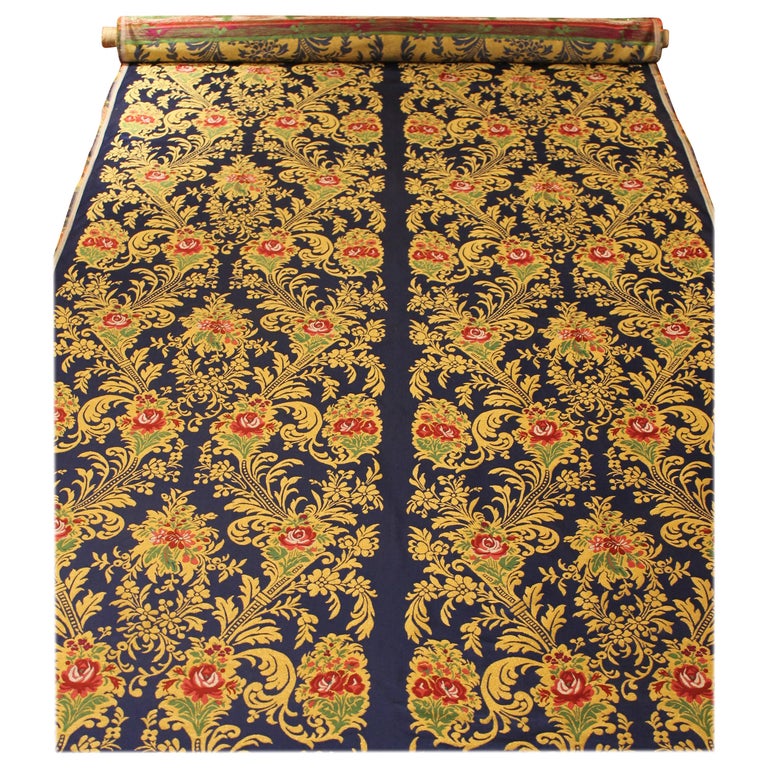 Italian Blue Silk Blend Brocade Fabric With Red Roses And Gold Floral Patterns For Sale At 1stdibs Italian Brocade Fabric Italian Silk Brocade Fabric Italian Floral Fabric